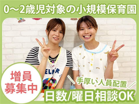 <0〜2歳児対象、定員19名の小規模保育園>時給1500円〜1700円可能!扶養内勤務OK☆勤務日数・曜日相談◎2026年度事業拡大に向けて増員募集中★【四日市市・霞ヶ浦駅・小規模保育園・保育士・パート】