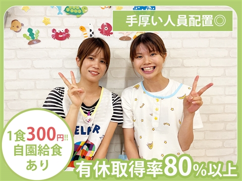 日祝はお休み、時間外勤務もほぼないのでメリハリつけて働きたい方にもおすすめです☆リーダー経験の有無は問いません◇人員配置は手厚いため、安心して働けます☆子どもたちに寄り添った保育の実現ができる職場です!見学希望の方もぜひご連絡ください◎