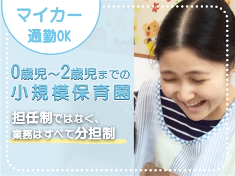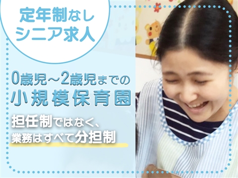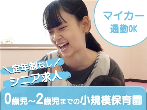 マイカー通勤OK!勤務日数は相談OK♪小規模保育園(定員19名)で働く保育士さん募集!0〜2歳児限定です◎シニア雇用促進求人★定年制はありません!有給休暇は入社時より支給◇