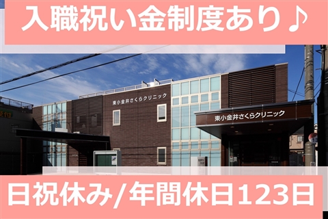 日・祝休み♪年間休日123日!子育て支援制度あり★入職祝い金10万円【小金井市、東小金井駅/新小金井駅、クリニック/外来、看護師、日勤常勤】