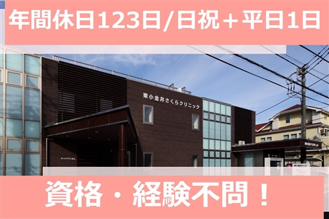 子育て支援制度あり♪年間休日123日♪新卒・第二新卒OK!会員制保養施設あり!日・祝+平日1日の休み◆資格・経験不問【小金井市、東小金井駅/新小金井駅、クリニック/外来、外来助手、正職員】
