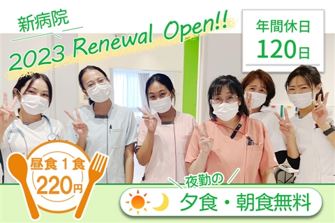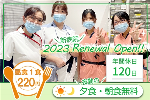 昼食220円&夜勤時の夕食・朝食は無料◆2023年リニューアルの病院◎年間休日120日!祝い金あり◎残業ほぼなし【姫路市・御着駅・病院・看護師・正職員】