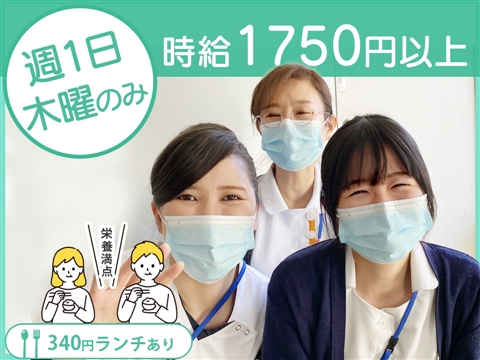 お仕事は木曜の週1日のみなので、お身体に無理なく働けます!時給1750円以上+交通費☆見学できますので、お気軽にお問い合わせください◇
