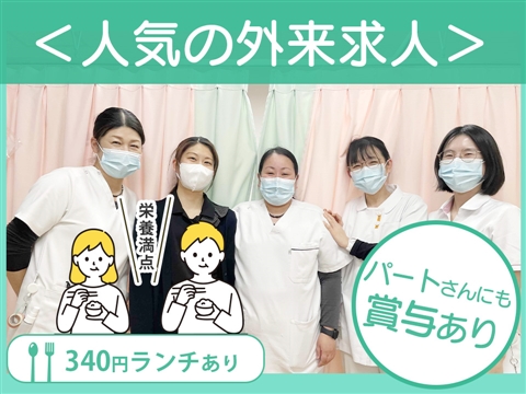 外来勤務の看護師の募集!勤務時間数によりパートさんにもうれしい賞与の支給&精勤手当あり!週3日から勤務応相談なのでご家庭やプライベートと両立しやすい◎看護師資格を活かして働きませんか?最寄り駅徒歩5分でアクセスしやすい★