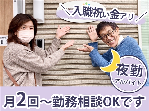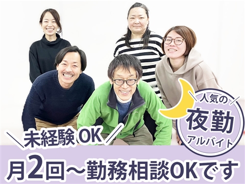 入職祝い金の支給があるのが嬉しい☆資格・経験不問の世話人募集です!勤務時間は2種類から選択OK♪月2回からで回数の相談もOK◎無理なく働ける人気の夜勤アルバイト求人!