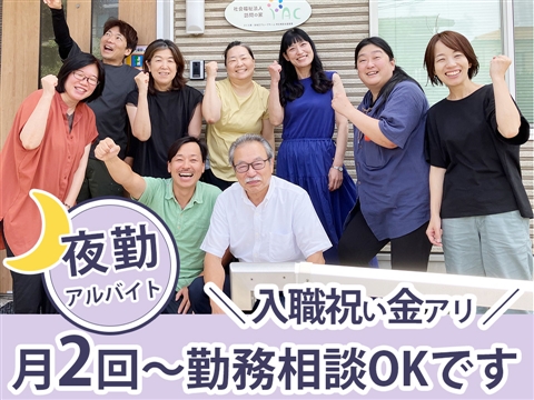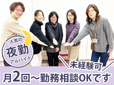 人気の夜勤アルバイト・世話人を募集します!勤務回数は月2回以上でご相談ください!勤務時間は2種類から選択可能です◎入職祝い金の支給があるのが嬉しい☆