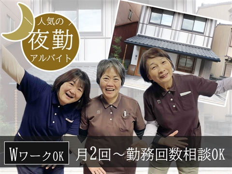 非常勤の方にも寸志を支給します☆60歳以上のシニア世代の方が対象◆夜間の介護業務をお任せします◎勤務は月2回以上で日数の相談可能◆この機会にぜひご応募ください☆Wワーク可能☆