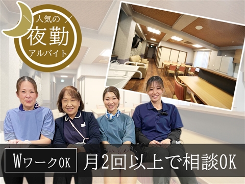WワークOK◇1夜勤2万6520円+パート職員も寸志あり◎夜間介護業務をおまかせします◇まずはお気軽にお問い合わせください☆