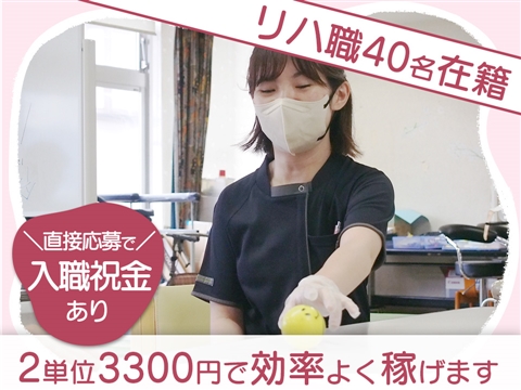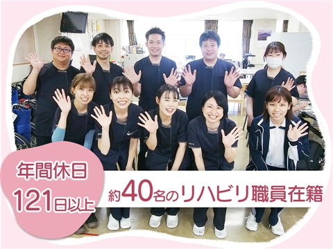 | 給与 | 月収22万6500円(月給21万9500円+皆勤手当7000円) 月収30万7000円(月給30万円+皆勤手当7000円) ※上記は、皆勤手当を支給する場合の月収例です。詳細は下記をご確認ください。 月給21万9500円〜30万円+皆勤手当7000円 ※月給には、資格手当3万円、施設手当4500円を含む ※訪問リハビリに従事した日は、1日2000円の訪問手当支給あり ※経験・能力により異なる |
