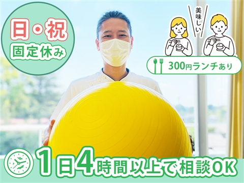 日勤パート・理学療法士を募集中★週1日&1日4時間から勤務相談可能★曜日固定OKなので、Wワークにもピッタリ!日祝固定休◆子育て世代も多数活躍しています♪☆マイカー通勤可だから通いやすい!おいしい昼食が300円で食べられます。