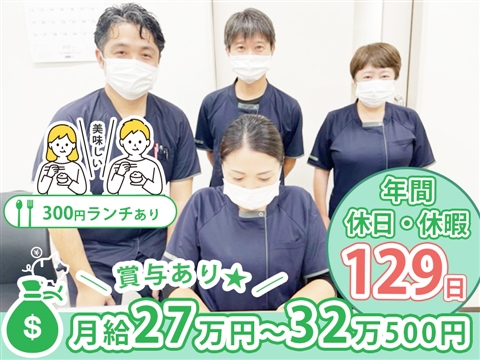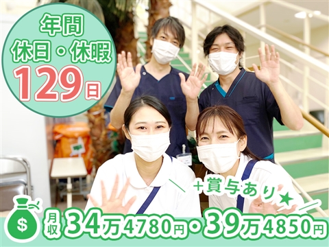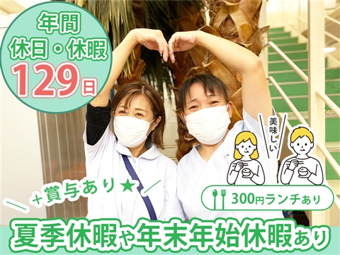 年間休日・休暇129日♪夏季休暇・年末年始休暇もあり☆賞与・扶養手当支給★美味しい「300円ランチ」が大人気です!【リハビリテーション病院、丸山駅、介護福祉士、正職員】