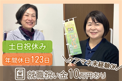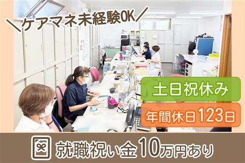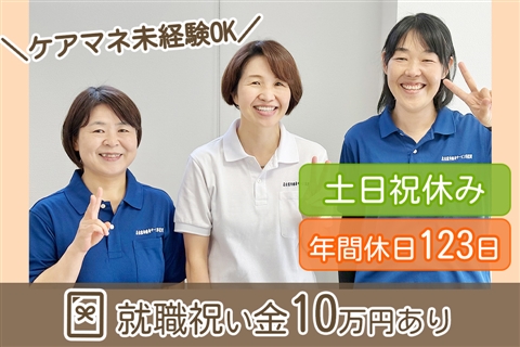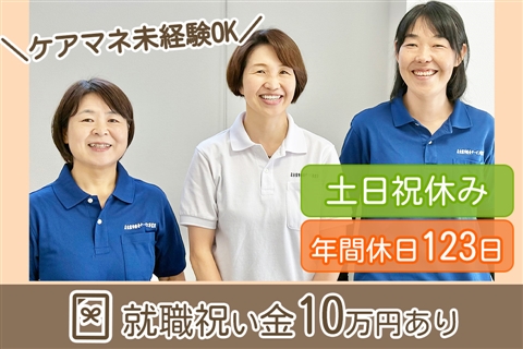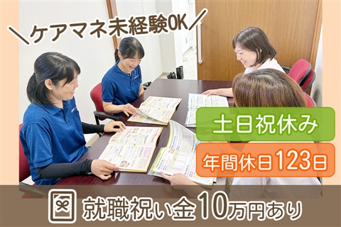 就職祝い金10万円支給☆教育カリキュラムが充実☆未経験OK◇土日祝定休、年間休日123日あり◇賞与実績3.5ヶ月分♪定年65歳【名古屋市緑区・左京山駅・居宅介護支援事業所・ケアマネジャー・正職員】