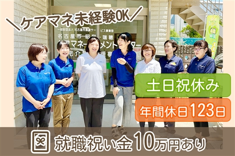 就職祝い金10万円の支給あり☆教育カリキュラムが充実!未経験OK◇賞与実績3.5ヶ月分♪土日祝休み、年間休日123日◇定年65歳【名古屋市瑞穂区・桜山駅・居宅介護支援事業所・ケアマネジャー・正職員】