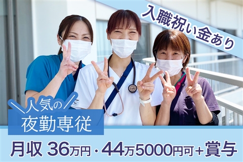 夜勤専従◎夜勤月8〜9回!月収36万円・44万5000円可+賞与4ヶ月実績!残業ほぼなし◎入職お祝い金あり◆第二新卒可能!【横須賀市、病院/病棟、看護師、夜勤専従常勤】