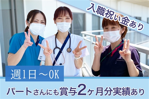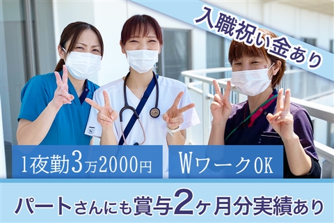 パ勤務は月1回から可能&多めの勤務も相談可能なので都合に合わせた働き方が可能です!入職お祝い金あり◇パートさんにも賞与2ヶ月分の支給実績あり!夜勤は夕食付き☆1夜勤3万2000円で効率よく稼げます☆残業ほぼなしでオンオフの切り替えはバッチリ!急変も少なく休憩もしっかり取れます◎