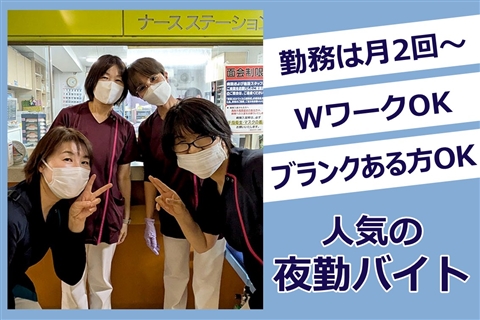 《人気の夜勤アルバイト!》WワークOK!復職の方&ブランクある方も必見♪月2回〜勤務可能◆【世田谷区・千歳船橋駅/渋谷駅/用賀駅・病院・准看護師・夜勤アルバイト】