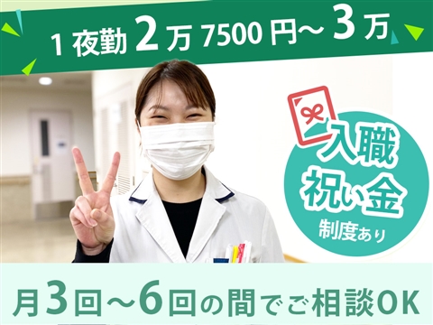 美味しい食事が1食385円★1夜勤2万8000円+入職祝い金も支給します♪勤務は月2〜8回で相談できます◇送迎バスの利用もできて通いやすい!人気のある夜勤のお仕事しませんか?