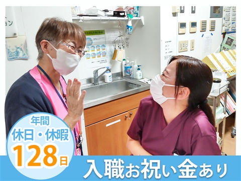 年間休日・休暇数128日あり♪日勤は17:30までの勤務!残業少なめでワークライフバランスが取りやすい正職員・看護師募集です◎入職お祝い金や扶養手当があるのも嬉しいポイント♪プライベートを充実させたい方にもオススメです★