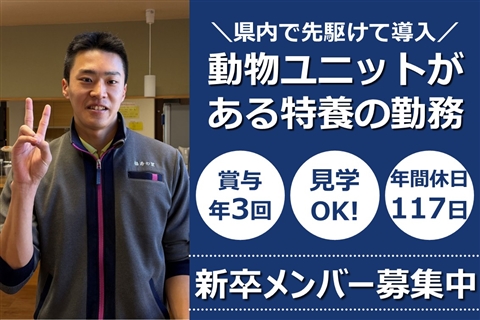 県内で先駆けて動物ユニットを導入した特養での勤務!施設運営なども学んで頂けます♪見学からもOK◎ぜひエントリーください!