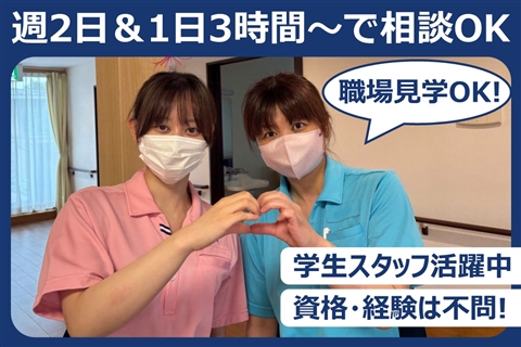 週2日・1日3時間〜♪働き方は柔軟に対応★髪型髪色自由!資格・経験不問!学生スタッフ活躍中◎動物ユニットのある特養での勤務◆学校終わりや休みの日にぜひ【狭山市、入曽駅、特養、介護職、学生アルバイト】
