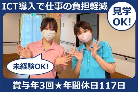 髪型髪色自由!年間休日117日◎賞与年3回実績あり♪サポートスタッフ配置&ICT導入で負担軽減★託児所あり◇無資格・未経験OK【狭山市、入曽駅、特養、介護職員、正職員】