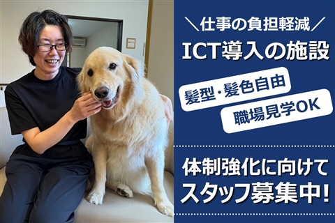 髪型・髪色自由◎賞与年3回!2024年オープンの動物ユニット勤務♪ペットと一緒に暮らせる特養★資格・経験不問◎年間休日117日【狭山市、入曽駅、特養、介護職員(動物ユニット)、正職員】