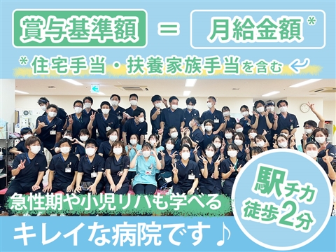 賞与の基準額は、住宅手当・扶養家族手当を含む月給金額です!リハスタッフ110名在籍♪福利厚生充実で安心です☆一般急性期や小児リハ含め、幅広く対応できる東葛病院でのお仕事★