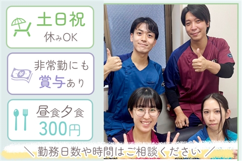 | 勤務時間 | 8:45〜17:00、8:00〜16:15、10:15〜18:30(休憩60分) 8:45〜12:15、13:15〜17:00(休憩なし) ※週3日〜応相談 ※土日祝お休み可 ※午前のみ・午後のみOK |