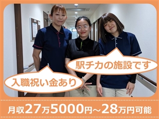 月収27万5000円〜28万円可+賞与!入職祝い金10万円★車・バイク通勤可◆駅チカ徒歩5分♪【堺市堺区・七道駅/高須神社駅・介護福祉士・介護付き有料・正職員】