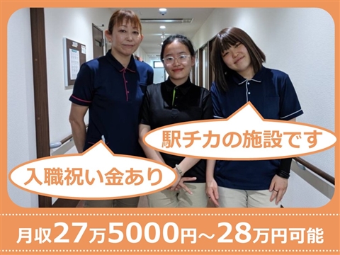 月収27万5000円〜28万円可能+賞与★駅から徒歩5分◆車・バイク通勤OK♪入職祝い金10万円!【堺市堺区・七道駅/高須神社駅・介護福祉士・介護付き有料・正職員】